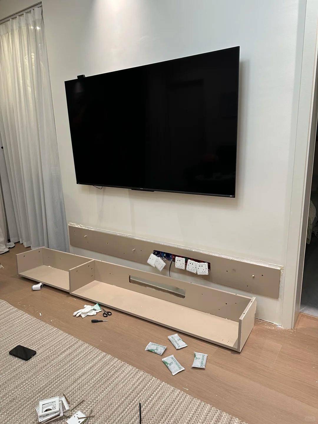 二、悬空电视柜别装!“高级感”是假象,早晚得掉都说“悬空电视柜显轻盈”,但实际安装后——