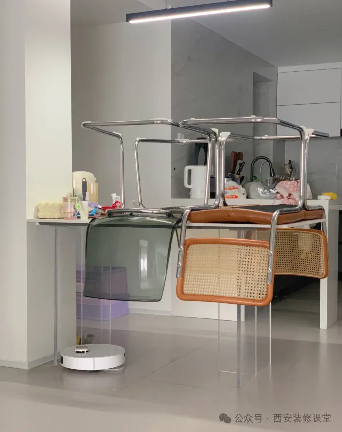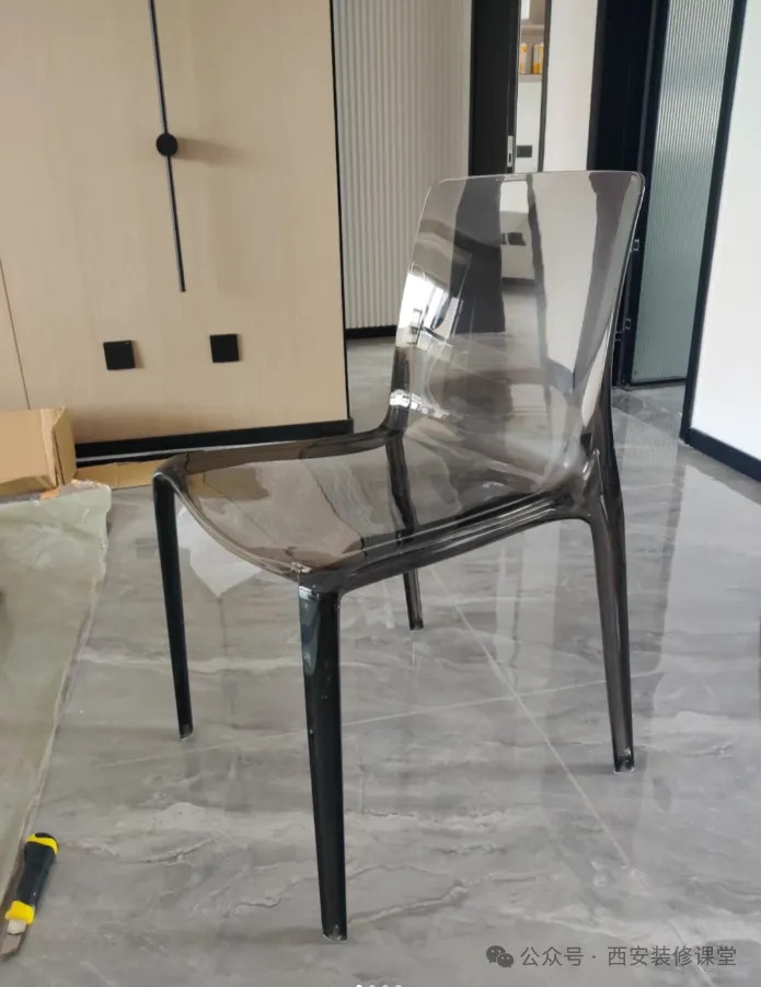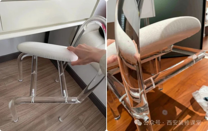 网友@丸子的家:想要亚克力椅子的颜值,必须接受它的脆弱和偏软,否则稍微胖的人不敢坐。