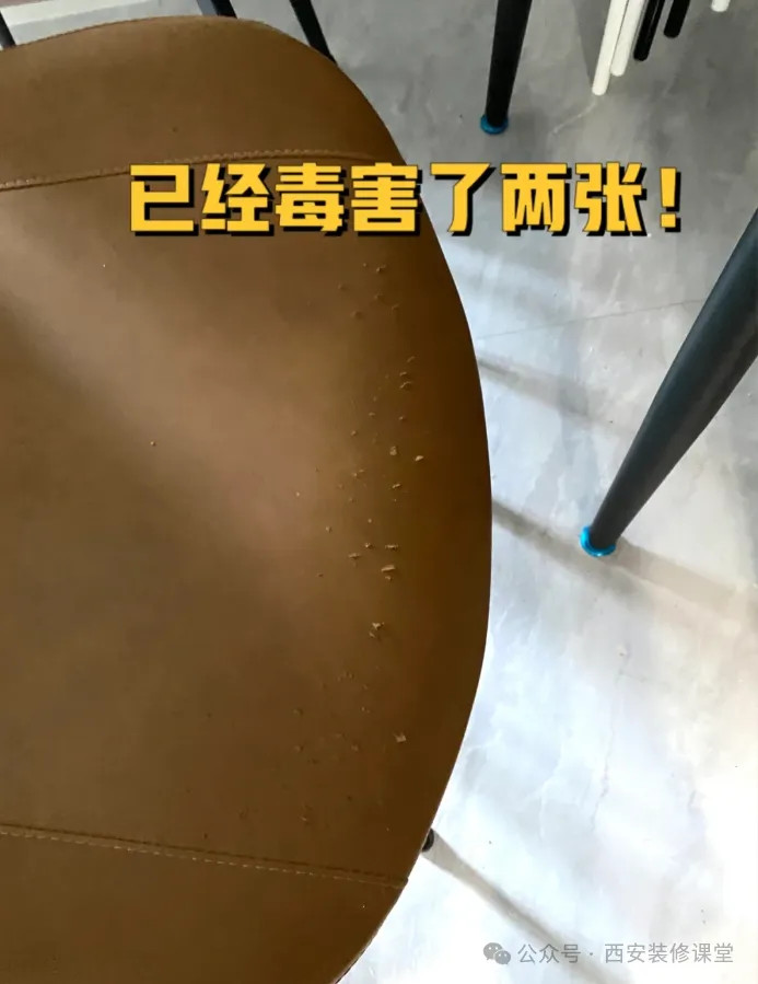 网友@想暴富:家里养猫的不要买皮质的餐椅,防不胜防,全部抓到稀巴烂,扔又可惜,套个布套太难看了