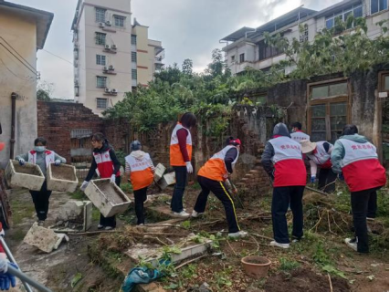 十八网格志愿者在清理闲置地块垃圾杂物