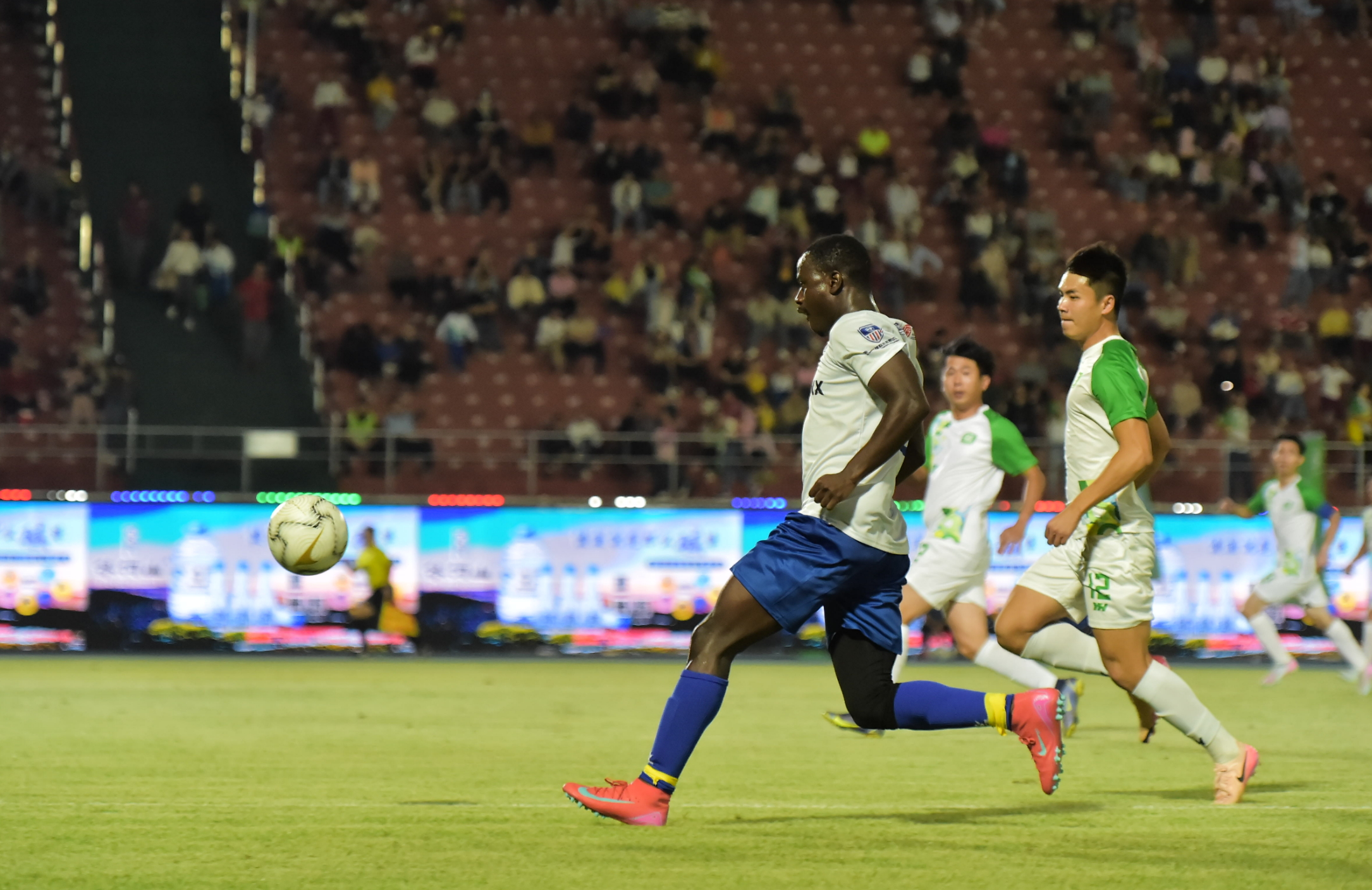 由英国斯托克波特队与佛山“西甲”百森椰汁队上演的友谊赛“开波”